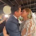 Durante la ceremonia, ambos mostraron su emoción al recibir la bendición del sacerdote, culminando el acto con un apasionado beso.