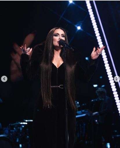 La talentosa cantante británica se transformó en la cautivadora Morticia, el personaje icónico de la familia Addams.Su elección de disfraz agregó un toque misterioso y elegante a su actuación en su más reciente concierto.