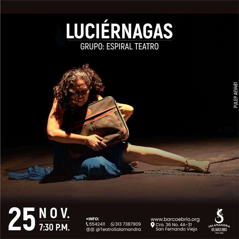 Quienes disfrutan del teatro el grupo Espiral Teatro presenta ‘Luciérnagas’ el sábado 25 de noviembre, a las 7:30 p.m. en el Teatro Salamandra (Carrera 36 #4A-31).