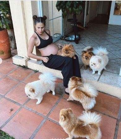 - Greeicy Rendón junto a varios de sus perros durante su embarazo.