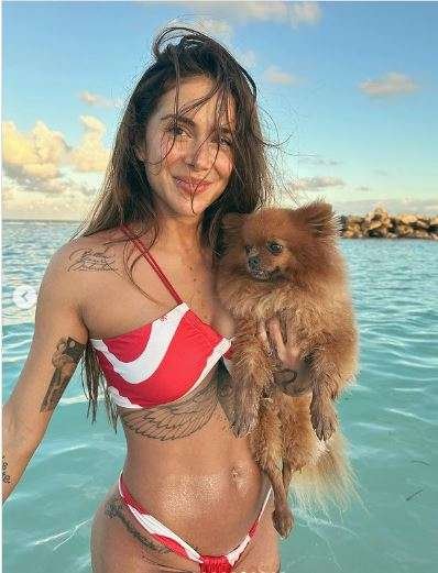 - Greeicy cargando a uno de sus perros en el mar. Fotos: Instagram @greeicy