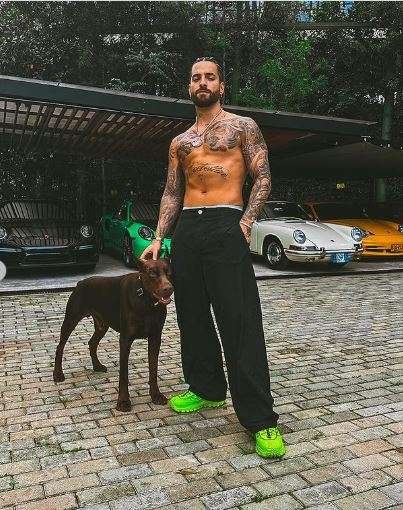 Este elegante can color chocolate, que llegó al hogar del artista en 2021, ha hecho un dúo perfecto con Maluma, incluso debutando como modelo para la campaña de Versace en 2022.
