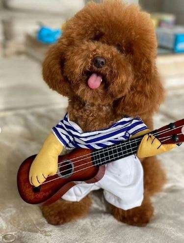 - ‘Teddy’, el perro Poodle de la cantante Shakira vestido con un disfraz de rockero
