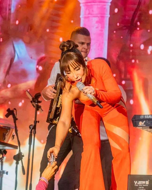Paola Jara en tarima, durante su concierto en Cali, el pasado 27 de mayo. Foto: Instagram @paolajarapj