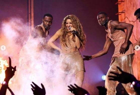 Comenzó con “She Wolf” (Loba), luego emocionó a todos al cantar “Te felicito”, una canción que marcó un punto de inflexión en su vida personal al revelar su ruptura con Gerard Piqué, el padre de sus hijos.